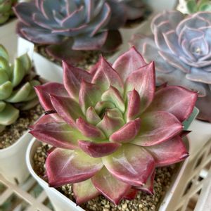 今日のお花がエケベリアってことで、うちのエケさんたち登場です😆 1枚目 オータムフレイム 花芽が2本出てます💕 お花が咲くのが楽しみ〜💕 2枚目 大増殖中のトプシーちゃんと七福神 七福神は、ちょっと前までめっちゃかわゆいお花が咲いてました💕 1ヶ月たってもまだ全部開かなかったので、✂️して父と母のところに飾ってます😊 3枚目 七福神のお花 4、5枚目 古株のフロスティー ほったらかしで情けない姿になってたので、仕立て直しました😆 この子も増殖中です🤣 うち、意外と多肉がいっぱいいます🤣