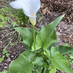 うれしい 数年ぶりにカラーが一輪さいた しかもだいぶモリモリ 西陽が当たるから庭の小道を作り替えてカラー畑をやめていたのだが…株が残っていたのか 落ち葉がそのまま積もって栄養になったのだろうか?