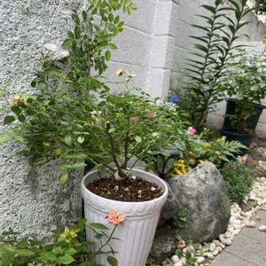 2025.0607(土) 先々週のことになりますが。。 鉢増し作業頑張りました。 1️⃣ ユキコ 禅ローズ つるバラ 7号ロングくらいの結構いい鉢に入っていましたが ひと回り大きいお気に入りのポットに鉢増ししました。 強健種で樹勢も強い子らしいのでとりあえずツルが伸びたら上へ誘導予定🚧 トゲがとても少ない品種なので 来年は玄関周りに誘引したいと思っています。 2️⃣ サイアカネ HT 個人育種家さんの入賞作品 日本ばら会の普及苗。やっと植え替えました😅 ばら会からきたくせに土が粘土のように粒子が細かくて良くなかったです。 でも、根は崩せないのでこのまま鉢増しです。 3️⃣ 挿し木のデンティベス 冬に色々挿したものの まとめてやるので。。 というか、単に管理ができていないせいなのですが どの枝がどの子か花が咲いて見るまでわからない子がほとんどです😅 この子も花が咲いて分かりました。 私結構咲かせてしまう派です😅 バラボランティアの冬剪定でいただいた枝でした。 これはかなり嬉しいです☺️ 4️⃣ スイートチャリオット 2/16に冬剪定した時にカットした枝を 休眠挿ししたもの。 紫色のお花が一輪咲いたので、スイチャリさんだと分かりました🌹 5️⃣ 3月にご近所さんの庭先のグリーンアイスを 剪定をして差し上げた時のカット枝を挿し木したもの。 お花を咲かせてくれました☺️