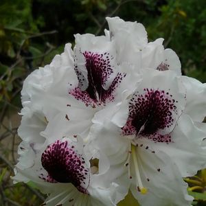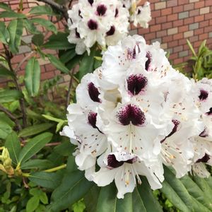 白花に紫色の斑点 サッフォーって言うらしい 🏷️今日のお花 シャクナゲ 西洋シャクナゲ サッフォーは 春と秋の2季咲きだそう 某マンションエントランス植栽