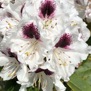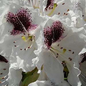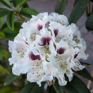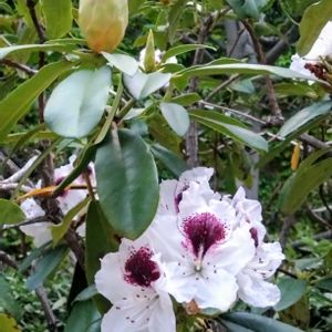 西洋シャクナゲ サッフォー 真っ白な花びらに赤紫色のブロッチが目を引きました😍