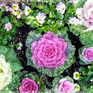 ビオラと葉牡丹の寄せ植えの一覧