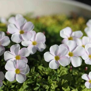 オキザリス グラブラホワイトとラブハピネス グラブラで桃の輝きやラブハピネスは タイキ種苗の登録品種名だそうで、 グラブラホワイトはラブハピネスと同じってことなのか🤔