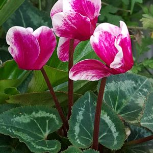 人生初、夏越し成功!ガーデンシクラメン開花👍 昨年春に玄関先の地植えから掘り上げ、ウェットで夏越し、更に秋、植替えしたものが開花しました! 花びらがウサギの耳の様に上にピンとまだ立ちませんが、開花宣言です! 一度も成功したことが無かったのでチョー嬉しいです😄