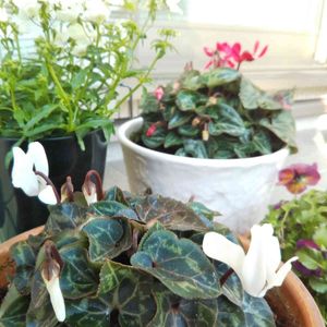ガーデンシクラメン達の寄せ植え 去年いただいて無事夏越しした偉い子と新入りさんと(。・ω・。)