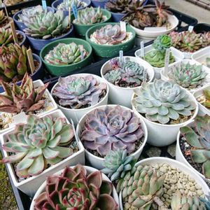 住んでる市で『手しごと市』と言うものがあり多肉を沢山、狩りました。 少しベランダ放置してましたが、今日やっと植え替えました。 こちらは、手しごと市の多肉とメルカリで買った多肉を。