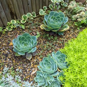 去年の秋に掘り起こした七福神を胴切りして(おととい)雨の中草取りしてから植えてみた💚 今日ウニカさんにコノフィツム買いに行ったら また他のも欲しくなって買ってしまった。アエオのでっかいお花咲いてた。初めて見た👍