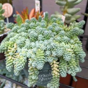 多肉花壇 手前の七福神は6/27に植えたものです。 とりあえず植えてから10日たちました。水分いっぱいすってムチムチ。根腐れもなくて元気だったので追加で七福神を3個投入💚💚💚 今日植えたのと色が全然違いますね。 雨避けと遮光を兼ねてポリカーボネート❓の屋根付けてます