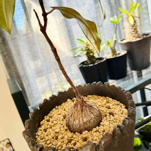 ガガイモ科ペトペンチア属 原産地:南アフリカ 塊根のガガイモ。 塊根好きの南アフリカ好きなら手に持ってるっしょ。 昔は火星人と同じフォッケア属に分類されてて「フォッケア ナタレンシス」って呼ばれてたんだって。 今はペトペンチア属でナタレンシスのみの1属1種というところも魅力❤️ 冬越ししたらスパルタ直射日光雨ざらし管理で大きく成長して欲しい😊