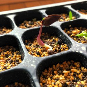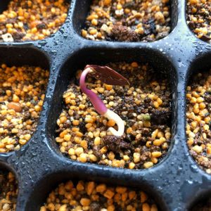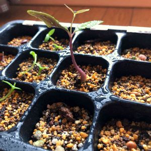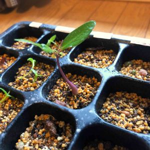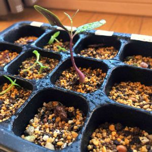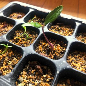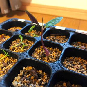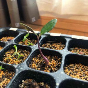 春に種を蒔いたペトペンチア・ナタレンシスさん🌱 葉裏が紫で美しいです✨ 21粒蒔いたら19粒発芽し、すくすく育っておられます😌 半分くらい育てばいいなと思っていたのに置き場所どうしよう💦
