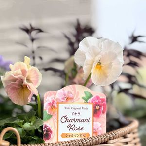 ビオラ シャルマンロゼ さん 優しい色合いと 可愛らしいラベルに惹かれて 🧺*゚ 咲き始め 縁に入る ピコティも可愛すぎます♡
