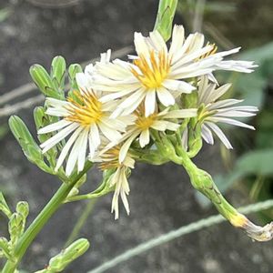 🏷️のんびり投稿 🏷️毎月2日はスヌーピーの日 に参加させていただきます 撮影は9/30です 今年は去年より多く咲いているのをみかけました ①花 ②葉 ③倒れても咲く ④パッケージにかわいいイラストが❤️ 🌼アキノノゲシ🌼 キク科アキノノゲシ属の一年草、二年草 50〜200cmと大きくなりますが柔らかく葉には棘もありません 花期 8〜12月と長く咲くようです 花は舌状花だけでできているようです 即席麺を買ったところパッケージを見てパチリして初参加しました