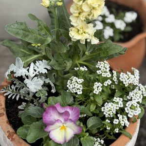 こんにちは🌥️😊 昨日、近くのJAさんのわいわい市で買い物ついでにお花も🌼💕 種類が少ないので寄せ植えで 華やかになるといいなぁ…と 思って作ってみました❣️ 春までもたせたいのでまだ スカスカです💦