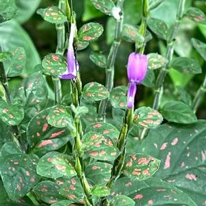 【雀斑草の一品種】 《キツネノマゴ科》 花言葉 「美の秘密」「全ての人への優しさ」 ソバカスソウは葉の表面に斑や斑点の入ることからつけられています。 花言葉「美の秘密」は、緑の葉を花のように美しく彩るソバカスに見立てられたカラフルな斑や斑点からつけられたのでしょう。 花言葉「全ての人々への優しさ」は、 葉全体に散る白やピンクなどのユニークな斑模様を人のもつ優しさにたとえた。 2021.12.22