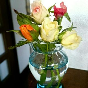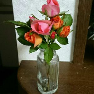 ミニバラが、欲しいけれど、手に入らないので、3番花の蕾を活けて、ミニバラ風💕