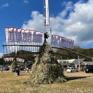 どんどん焼き(どんど焼き)昨日 晴天の中 ひと足早いどんど焼きが行われました。 松飾り しめ縄 書き初めなどを広場でお焚き上げ年神さまを送ります♪お団子を焼き 食べ 無病息災 五穀豊穣 家内安全を祈ります