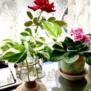 斑入りセントポーリアが久しぶりに咲いてくれました💜🤗💕 斑入り金のなる木シンシン〜素敵だったので去年お迎えしました╰(*´︶`*)╯♡
