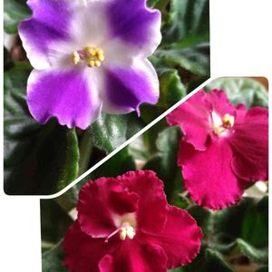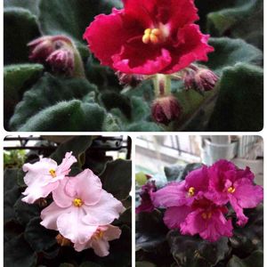 今日のお花〜セントポーリア❇️ 先日の珍しい赤と、白が入って変化した紫が綺麗に咲いてます💕✨