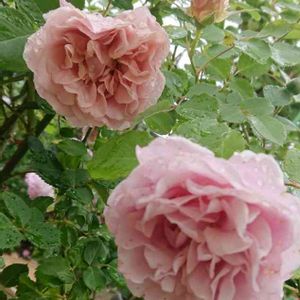 あおいに引き続き御姉妹シリーズ、雨に憂うしっとり顔のいおり🌹 いおりはあおいよりもひと足先に咲き進んでアンニュイなニュアンスカラーを庭先に添えてくれています☺ 実物のNudyで絶妙な色味をpicではなかなかお伝え出来ないのが残念😢