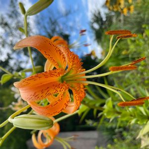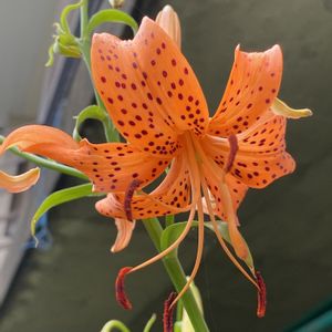 我が家の鉢植え🪴コオニユリです‼️ 数年前に老母が食用に買ったユリ根に芽🌱が出たため鉢植えにしたコオニユリが立派に咲きました😊 ユリ根の正体が大好きなコオニユリだったとは.....😭👏