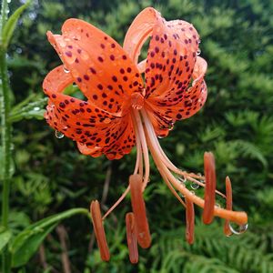 小鬼百合 いつも見るよりずっと小さくて 鬼百合とはこんなに大きさが違うのだ、と納得。 そしたら、大きさだけでは無く小鬼百合にはムカゴができない。去年もそんな事聞いて納得したのに、すっかり忘れてました。鬼百合にはムカゴが出来、小鬼百合には出来ない。鬼百合のが増え易いのかな