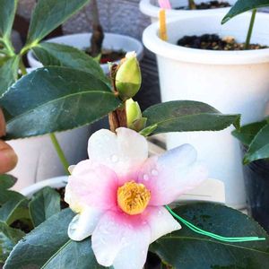 夢の椿 最初は白が多くて… 商品POPと違うな(´-ω-`)と 思っていましたが 今日水やりに行ったら あらっ綺麗😍 POPと同じ花だと 嬉しくなりました⤴︎