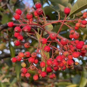 カナメモチorレッドロビン オオカナメモチとカナメモチの交雑でできた園芸種がレッドロビンとのこと。 公園に数本あり、毎年綺麗な実をたくさん付けます❤️ そういえば花は投稿したことないかも🙄