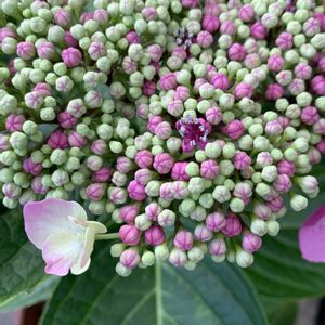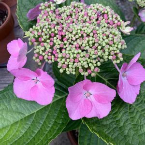 鉢植えの額紫陽花 実家から切り花でもらって来て鉢植えにしたのだけど・・・こういう色だっけか?と忘れている私( ̄▽ ̄;)