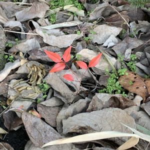 ぽつんと一株の赤い葉っぱ。 さて、君はどこからきたのかな? 我が家の南天の木からは離れているからお隣からかな?