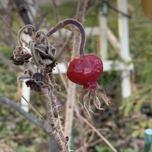 昨年の12月半ばに撮影したハマナスの実 雪や霜に当たって凍って溶けて。 なんとも趣のある景色に。