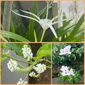 お出掛け先で出逢ったお花たちです。 ↑はハマユウ?でしょうか‼️ 一輪だけ綺麗に咲いてました。 ↑スパイダーリリー🕷️と教えていただきました☺️ ↙︎は、もしかしてコバノズイナ❓ 前から気になってた子ですが、 もしそうなら、沖縄でも育つんだ〜❣️って嬉しくなります🥰 近くを通る時は暫く観察🔍してみなくっちゃ🤔