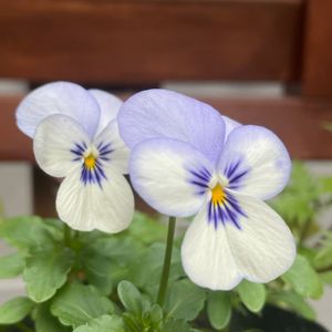 がんばるビオラさん❣️ 咲き進むにつれ色が変化してきました😊 花びらヒラヒラで優しい色合い😍😍