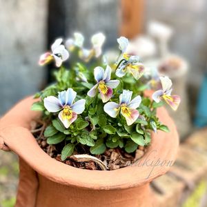 今季の一年草花壇に植える子達です🥰 初めてストックをお迎えすることにしました🎶 種まきっ子達もいるので花壇の手前に植える子を悩みましたが久々にビオラを植えてみます😊 青と黄色の可愛い子を見つけたので🥰 ビオラはナメ野郎が嫌なので地植えにはしない主義?でしたが何とか対策します✊ ネメシアのピンクレモネードも久々地植えです😊 カレンデュラのアプリコットの様な茶色の様なお色を差し色予定です😊 お一人様植えとして ビオラ アイクルール初お迎えです💕 レディよりフリルもお色も控えめですがとても可愛いらしい子と目が合いました🥰 ビオラは打ち止めだったのに花壇用の花をを探してたら出逢ってしまいました😂