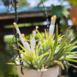 エアープランツ チランジア イオナンタ 花が咲くときに葉が白っぽくなるタイプ 花も白です