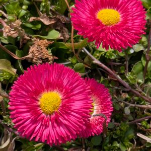 《ヒナギク(デイジー)》 キク科ヒナギク属の一年草で、ヨーロッパや地中海沿岸が原産です😆 花は白やピンク、赤などがあり、冬から春にかけて咲きます🌼🌸 日本では、春の花壇を飾る花として親しまれています。🤭🌸🌼