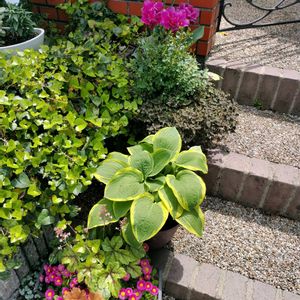 玄関のチューリップとデージーが盛りを過ぎ、もう少しで入れ替えです。 これからホスタとミニミニバラほほえみルージュ、リシマキアミッドナイトサンが咲きそう♥