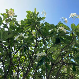 プルメリア🤍青空が似合う花です🌿 タイ語で、リーラワディー、美しい女性という意味だそうです💕