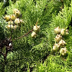 小さいけれどゴツゴツした実がいっぱい付いていました🌲 "児の手柏"… 子供が手のひらを立てていることに見立てて「コノテガシワ」と…🌲 常緑針葉樹、枝葉や種子は生薬とされることもあるそうです🍃