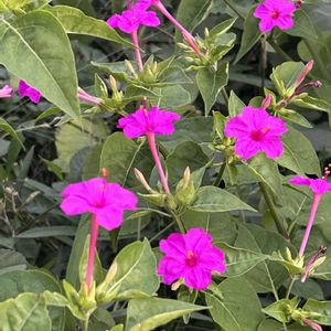 今日のお花🌸オシロイバナ🌸 白粉花 オシロイバナ科 同属 南アメリカ原産で、日本には江戸時代に渡来し、観賞用に栽培された 温暖化で宿根草として広く野生化している 夕方になると花は開き、薄暗い中でも光っている様に見えます 写真に撮ってもとても鮮やか色で映ります ピンク色の花は、近所の川沿いに群生しています 黄色、白、斑入りといろんな色があります 夜に主にスズメ蛾が吸蜜している様です 蛾は嫌いなので見たく無いです 名前の由来は、種の中の白い粉(胚乳)がおしろいに似ている事
