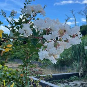 皆さん今晩は✋ 今日の天気は晴れ☀️雨☔️晴れ☀️雨☔️てな感じで晴れ出る時こそ日差しが痛く暑かったですが雨の影響もあり気温はそこまでだのかなぁ❓ と言う天気でした✌️ で仕事帰り夕立ちと言って良いのかしっかりと雨が降り愛犬の散歩も秒で終わり😅 おかげで後の機嫌取りが大変でした😂 そして気になるのが台風14号ですね💦 今の時点で目もハッキリしてて非常に強い勢力ですが沖縄奄美の真南位にありそこから西側に向いながら北上し中国に向かうと言う予報円です、 が何せ予報円もかなり大きく今の予報円の東側を通れば余裕で奄美沖縄鹿児島県本土も直撃があり得る位なのでまだまだこの台風は分かりません、 予報円の真ん中から西側を通ってくれたらこちらとしては良いのですが今年は台風がまだ全然来てないしどうでしょう、 この台風は心配です😓 さてさてそれはともあれ今日の写真👍 秒で終わった愛犬の散歩コースに百日紅の花が咲いて居たので写メりました👍 品種とかは分かりませんが見ての通り白い花のサルスベリです‼️ そしてこの空からこれから雨とは思わないと思いますが写メったのちに後ろから雨雲が来てたので速足で帰りました💦 ちなみに百日紅も盆栽としても全国で育てられていて自分もまだ鉢植え鉢上げさえしてませんが挿し木で少し持っております✌️ そしてこの写真の百日紅もう少ししたら種も取れるので実生しようとかも考えております。 サルスベリは盆栽としても育てられるのも分かっていましたがし、 散歩コース等割りと近所にもあちこちある百日紅ですが実は小さい頃から百日紅はシロアリがすぐ付くと言う話しを聞いて居て中々手を出せずに居ました、 ですが今年からは育てる樹種も増やしましたしこのグリーンスナップも始めたという事で今年からサルスベリも実生から育てようと思います‼️‼️ ちなみ近所にはこの白い百日紅と、 ミニと言うのか葉が小さく調べたら矮化性らしく明らかに葉も背丈も小さいピンクの花のサルスベリがあり今はその2つの種類を挿し木してるので鉢上げしたらまたそちらも投稿します‼️‼️ はいっまたまたまとめられなくてすいませんがまた明日👋