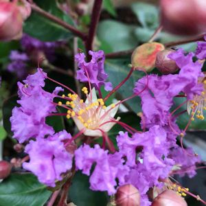 おはようございます😄 今日は台風の影響が少しあるようで… パラッと雨が降りました… 風も昨夜から凄く強い🍃🌀☔ サルスベリ マスコギー** 4年前に500円でお迎えして➰ 今年は、かなり大きくなってしまった~💦 ヤクシマサルスベリとの交配種らしく、咲き始めが遅い品種らしい➰ 鉢植えなのに高さ2m×幅2mにもなってる😂 嬉しいような、困ったような➰🤣🤣🤣