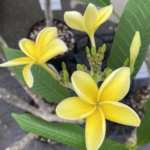 「プルメリア」 花芽ものびてきて花びらが見えてきました! 初めてなので何色が咲くか楽しみです🎶