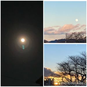 12月の満月🌕コールドムーン③ 上 (2021.12月19日 19時18分撮影) 下 ( 2021.12月19日 19時34分撮影) 今年最後の満月を少しアップで🌕✨ 雲もなく、キレイに真ん丸に見えました😊 冬の澄んだ夜空のお月様は、キレイだけど、 夜のベランダは、寒い😨