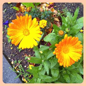 🌻キンセンカ(カレンデュラ)💚💙💛❤️🌻 (☂️雨の散歩)