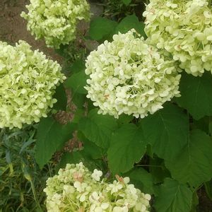 アナベル、咲き進み、黄緑色に変わって来ました。💚 ②満開の頃 白で綺麗です。🤍 ③咲きはじめの頃 ④ミニバラ オプティマチュチュ 2輪咲いています。 ⑤ユウゼンギク咲いて来ました。 遅い時間の投稿失礼します。🙏