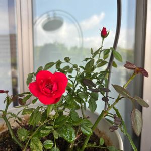 今朝のベランダのミニ薔薇トリオ 上のグリーンアイスは真っ盛りです🤍 ↙️は真っ赤なミニ薔薇 ↘️は久しぶりにこんな濃い色になったモーニングブルー 冬はこんなに色が濃くなって開花が待ち遠しいです〜 今朝はめまいが落ち着いていてホッとします😌