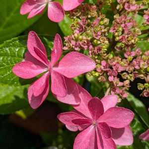 パーティ会場はこちらですか?と咲き始めたダンスパーティ。 数年前に母の日に送ったものを母が地植えにしたのを一部もらい、3年目にしてやっと花が咲きましたー 思ってたよりも濃いピンクなので、勉強して淡いピンクにしてみたいなぁ