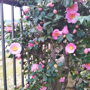おはようございます☁ 我が家の椿 笑顔です😄 お花の少ないこの時期 華やかになります🤗