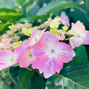 私の背丈より高い 甘茶です💞💞💞 ずいぶん前に地植えにしたら 大きく育ちました♪〜