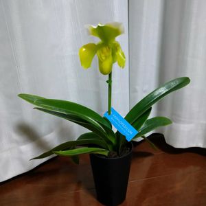 連れ帰りました🤪 ホムセンでパフィオ見たの初めて。今まで気づかなかっただけかな? 向山蘭園さんの。品種名は特になし。だからホムセンでも売れるのかね。ホムセン価格。 花の形の良し悪しはわからないので、葉っぱが多いのを選んできました。 だけど、花茎が出てる芽のところの葉は、株元あたりはヘナヘナで、重力に負けてクタッとなってる(写真4枚目)。これって何が原因なんでしょうね? 写真5枚目は、買わずに我慢したマイカイ・マユミ!きれいだわ。